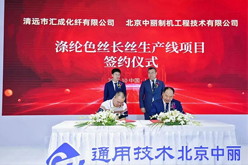 北京中丽与清远市汇成化纤有限公司签署涤纶色丝长丝生产线项目